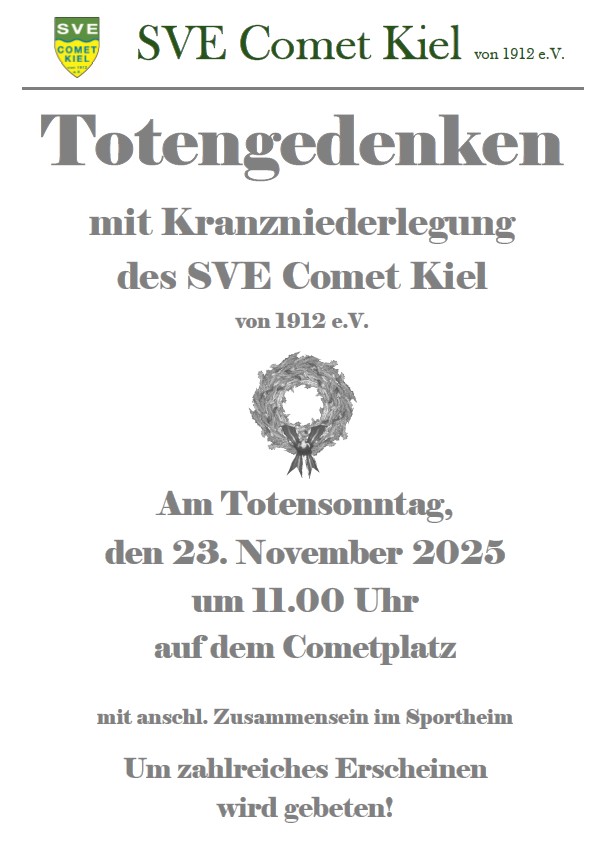 zum heutigen Heimspiel seiner Fußball- Landesliga- Mannschaft gegen den TSV Kronshagen begrüßt Sie der SVE Comet Kiel von 1912 e.V. recht herzlich.